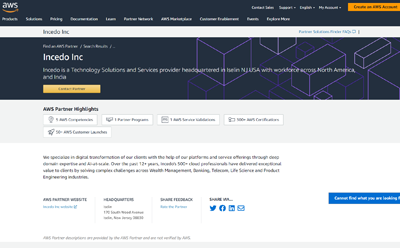 Incedo Competencies on AWS Partner Website