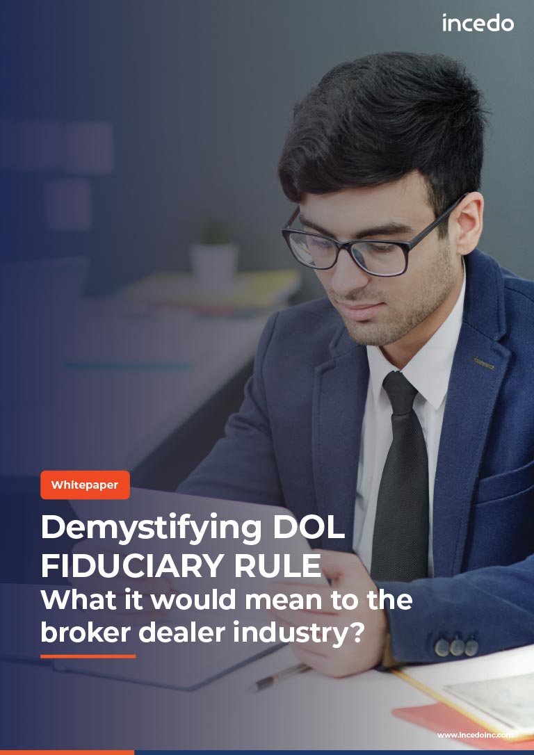 The broker dealers were still grappling with the problem of integrating the systems of their new found entities, when the Department of Labor (DOL) threw them another curveball in April 2015. This curveball has since come to be called as DOL fiduciary rule and threatens to alter the entire dynamics of the industry, which has operated on a variable compensation model for decades. It will force the industry, which has long regarded its role as transaction facilitators, to wear the hat of the advisors and discharge all the onerous responsibilities that come with it. But what exactly is the DOL fiduciary rule and what will be its impact? This white paper is an attempt to demystify the ruling and aims to propose what broker dealers should be doing to prepare for this seismic event.